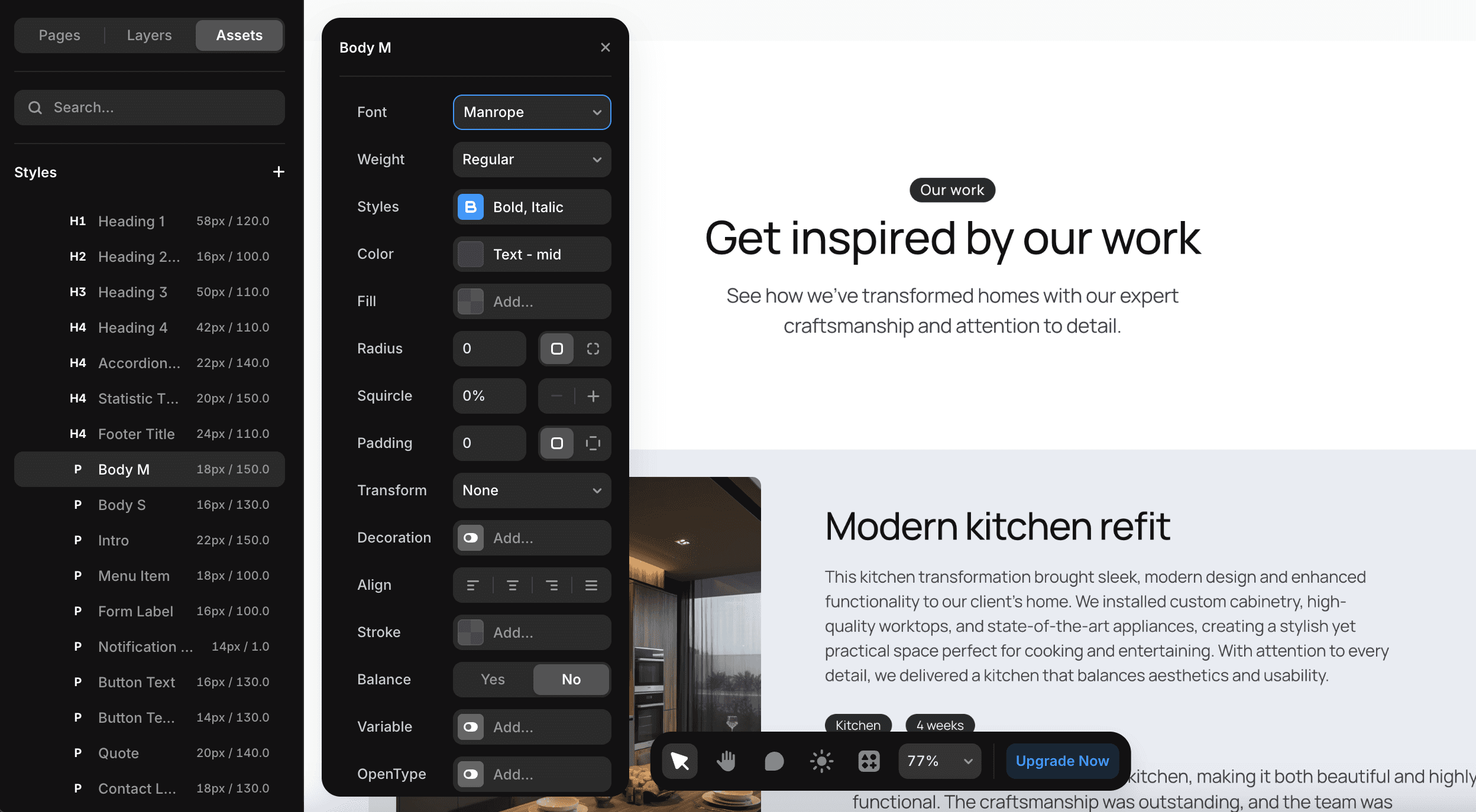 I recommend leaving the text styles as they are but if your brand uses a specific font, you can edit them in a similar way to the colors: